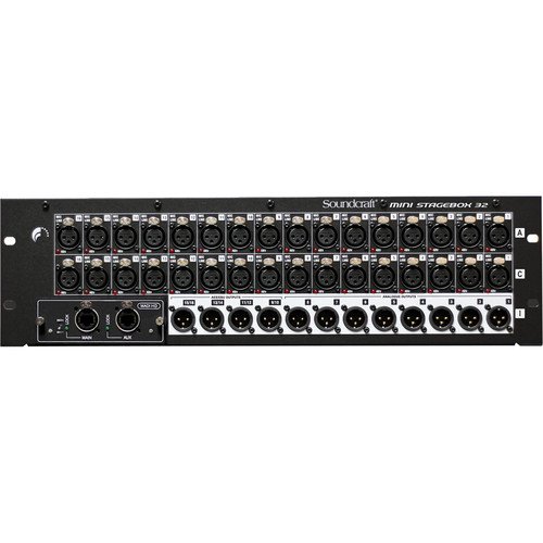 The Soundcraft Mini Stagebox 32 presents a cost-effective and simple solution for extending the Input/Output (I/O) functionality of any Vi or Si series console. Ideal for both local use or remote scenarios extending hundreds of meters away, this unit requires only 3U of rack space and delivers a total I/O capacity of 32 inputs and 16 outputs.
