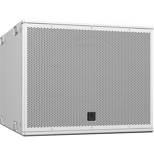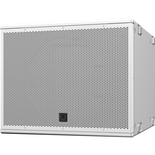 This subwoofer delivers fast, accurate transient response for virtually distortion-free operation. The cabinet is finished in a semi-matte white paint, constructed from 18mm birch plywood, and includes a powder-coated perforated-steel mesh grille backed with reticulated foam. With a 35mm pole socket, internal M10 rigging points, recessed carry handles, and high-impact interlocking corners, stability is assured. The rear-panel connector plate features Neutrik speakON NL4 connectors with switchable input and link connections for standalone subwoofer applications or subwoofer and satellite-speaker connectivity.