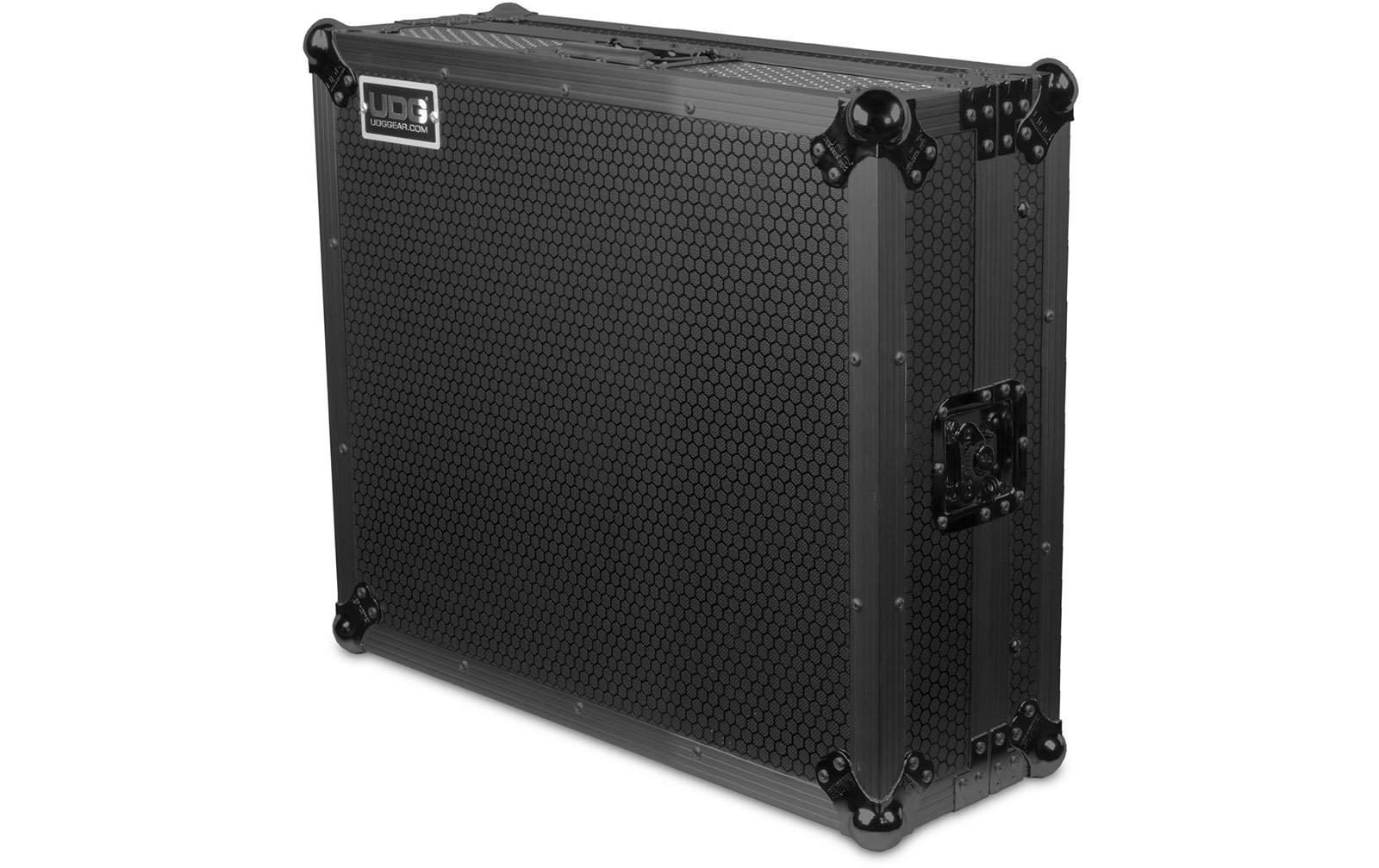 The UDG Ultimate Flight Case Multi Format XL Black MK3 Plus, equipped with a convenient laptop shelf, ensures your complete DJ setup is both secure and easily transportable. The case is constructed from robust 9mm plywood and features a black finished honeycomb/hexagonal “Stage Grip” pattern for an elegant appearance.