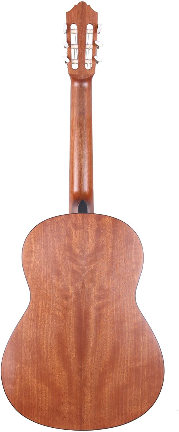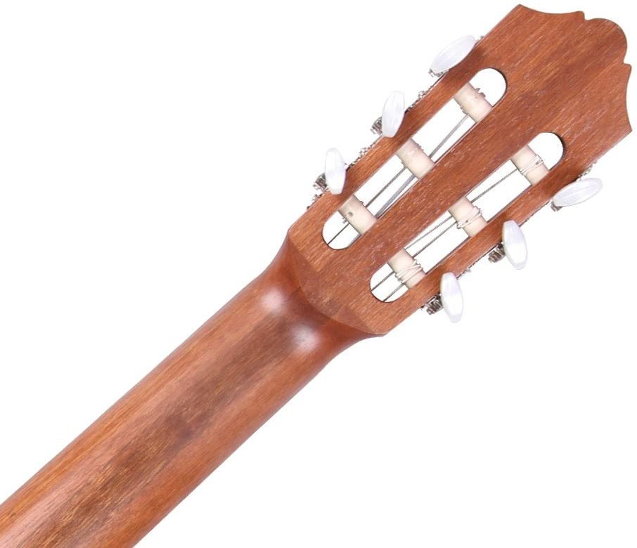 Featuring a solid cedar top, the guitar delivers an open and rich sound right from the first strum. The nato wood used for the neck, back, and sides ensures a robust and resonant tone, enhancing the depth produced by nylon strings. The rosewood bridge and fretboard contribute to a clear sustain and articulate chords, offering a delightful playing experience.