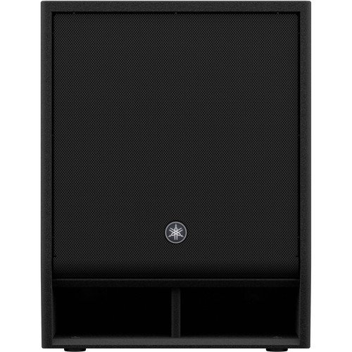 The Yamaha DXS15XLF-D is a black, Dante-equipped powered subwoofer with a 1600W Class-D amplifier, designed to enhance the low frequencies of full-range speakers, specifically complementing the DZR-series powered loudspeakers with a frequency range of 33 to 150 Hz and a maximum SPL of 136 dB.